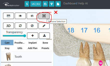 👉 Once you finish, click Remove Selection to deselect before moving on to another tooth. This prevents adding treatments by mistake.