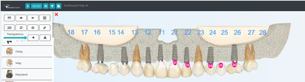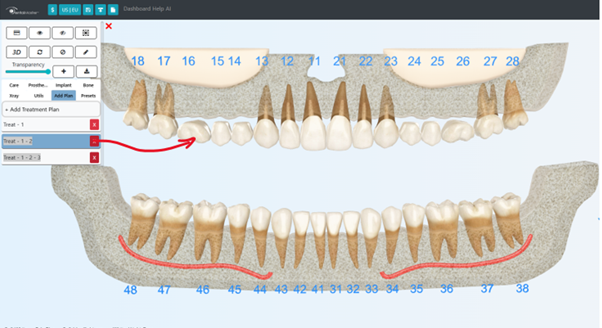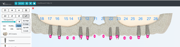 👉 All teeth between the two will be selected automatically (ideal for bridges or multiple adjacent crowns).