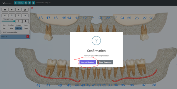 Step 2: To add a treatment plan, click + Add Treatment Plan and select Current Situation. A new plan will be created. Repeat this step if you want to add more plans.