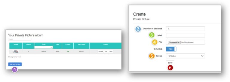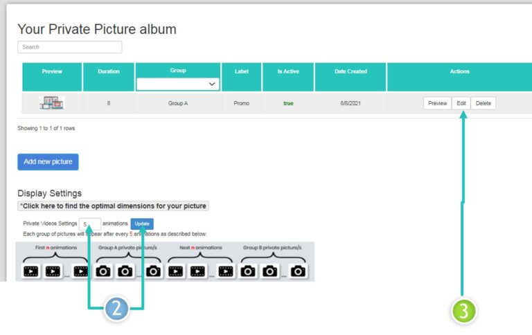 You can add your own pictures to be shown between the videos. The pictures can be arranged into groups
